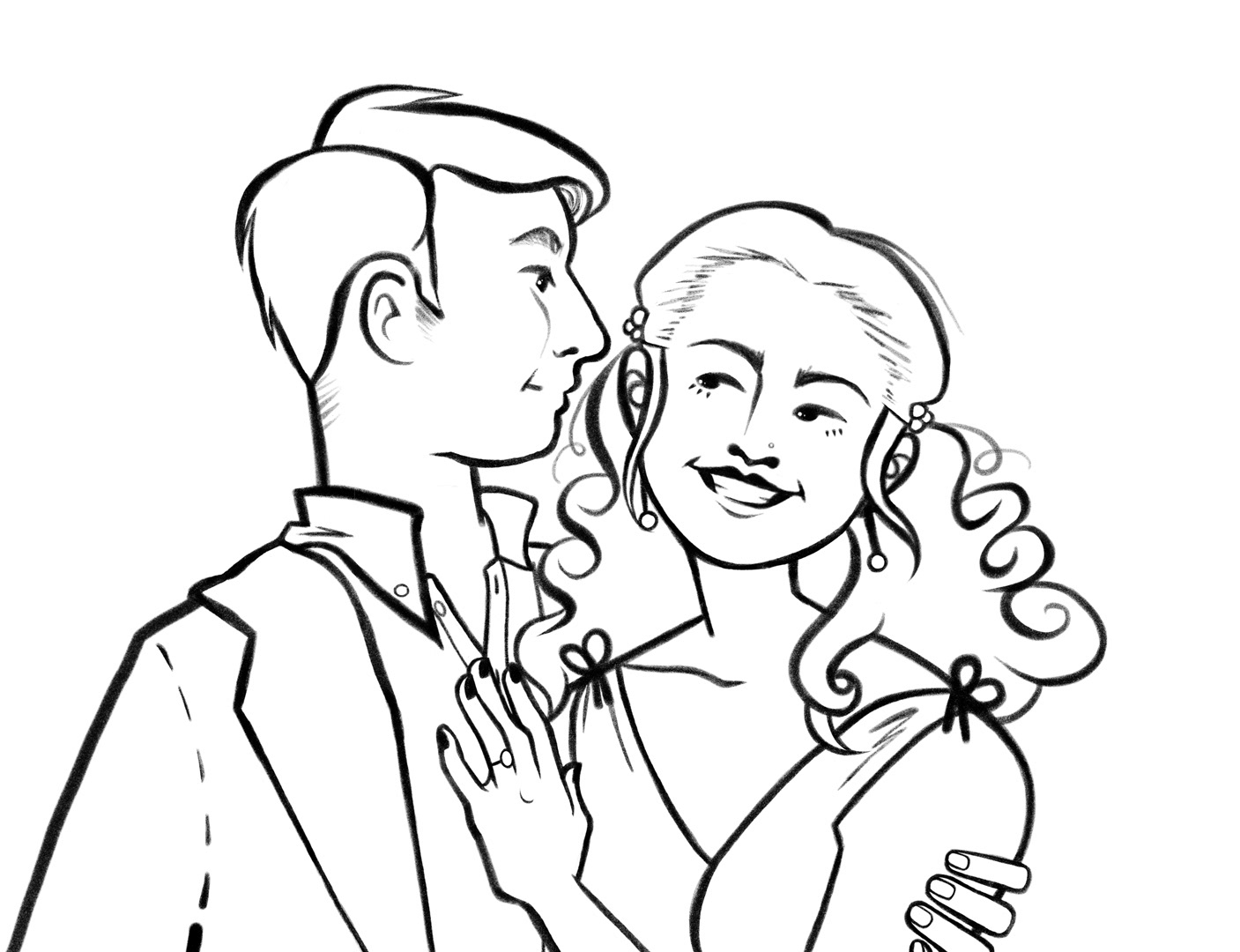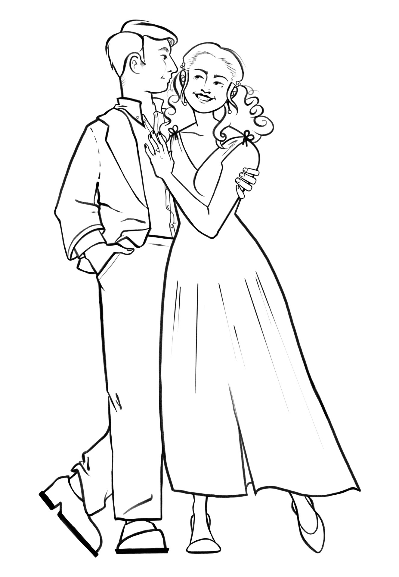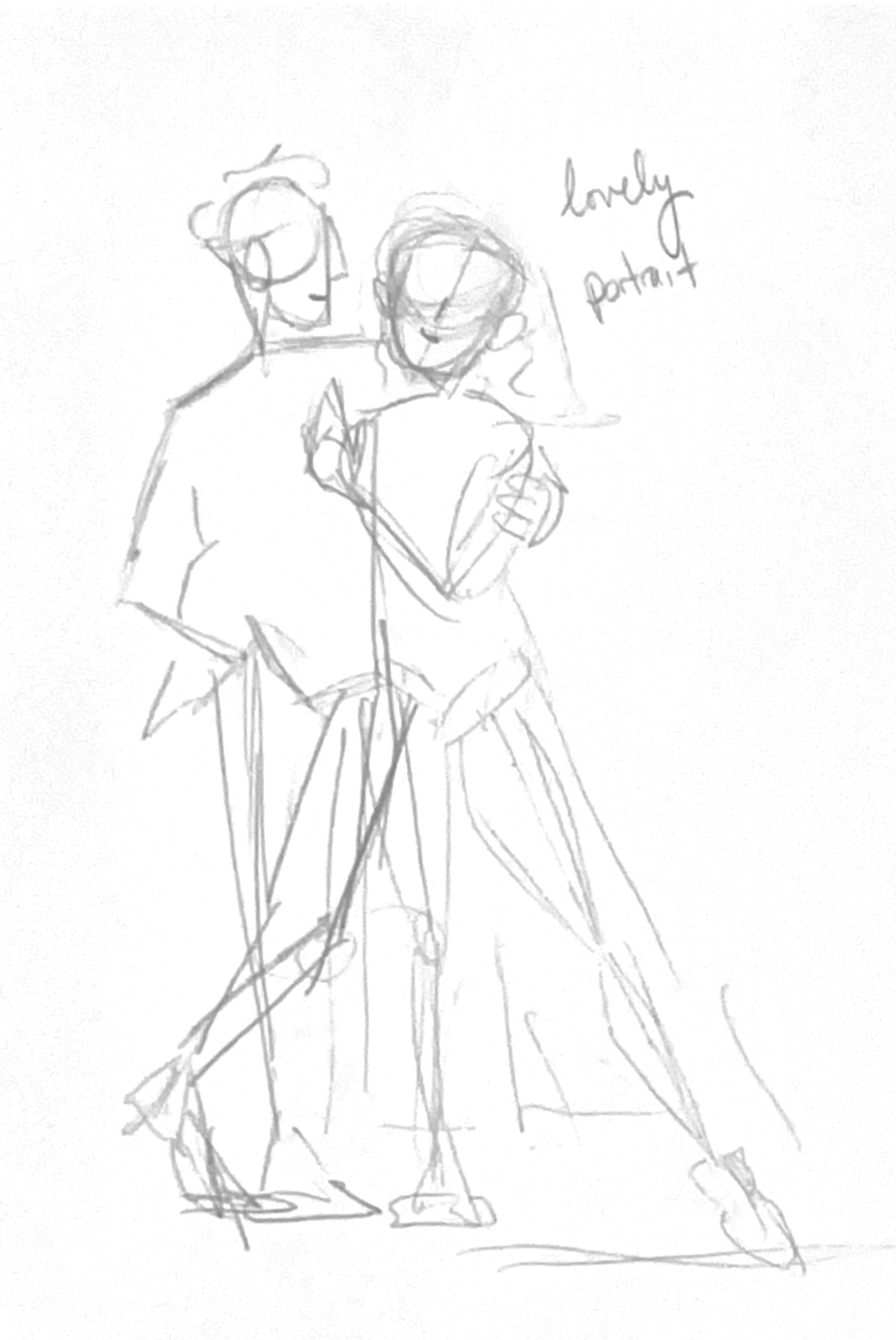 After a long discussion about the wedding itself, I got to work sketching pose options for the illustration. We decided that a standing pose was the winner because it felt like a classic wedding composition that could be refreshed for their modern, party-style ceremony.